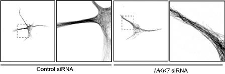 Ein Protein – zwei Jobs Von den rund 80 verschiedenen mRNAs, welche die Forschenden in von Zellkörpern befreiten Neuriten identifizierten, zeichnet sich das Protein MKK7 dadurch aus, dass es zu einer weiteren Aufgabe fähig ist: Anders als im Zellkern bündelt und stabilisiert MKK7 am Ort des Wachstums von Nervenzellfortsätzen die Mikrotubuli. Mikrotubuli sind Bauteile des Zellskeletts und bilden das Rückgrat von Neuriten und Dendriten. Die neu entdeckte Aufgabe von MKK7 ist äusserst interessant, weil Hemmer von MKK7 bereits klinisch eingesetzt werden, um Stressreaktionen nach Nervenverletzungen zu verhindern. Angesichts der vorliegenden Resultate sollte nun geprüft werden, ob MKK7-Blocker nicht auch die Nervenregeneration hemmen. Abgesehen davon zeigen die Resultate der Basler Forschenden, dass es Proteine gibt, die fähig sind je nach Wirkungsort unterschiedliche Funktionen übernehmen zu können. Damit wäre die oben gestellte Frage weitgehend beantwortet. Referenz