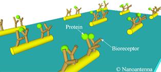 Plasmonic biosensors make highly sensitive diagnostic devices8 July 2014 A new type of highly-sensitive and low-cost sensor, called a plasmonic biosensor, could detect a range of biomarkers that diagnose diseases at an early stage. Biomarkers, which are chemicals such as proteins in blood or saliva, for example, whose presence or abnormal concentration is caused by a disease. Biomarkers can indicate the presence of diseases long before the appearance of symptoms. However, currently the detection of these molecules still requires specialised laboratories and is costly. The EU-funded research project called NANOANTENNA, which completed in March 2013, developed a plasmonic nanobiosensor for the detection of proteins. It consists of nanoantennas, tiny gold rods about 100 to 200 nanometres long and 60 to 80 nm wide. By shining light onto such a nanoantenna, the electrons inside start oscillating, amplifying the light radiation in hot spots on the antenna, explains Pietro Giuseppe Gucciardi, a physicist at the Institute for Chemical-Physical Processes, affiliated with the Italian National Research Council CNR, in Messina, Sicily.