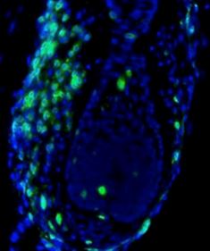 The current paper describes how the team first studied mice with the disease, then tracked backward from the danger signal to identify the specific set of T cells responsible for attacking the hair follicles. Further investigation of mouse and patient cells revealed how the T cells are instructed to attack and identified several key immune pathways that could be targeted by a new class of drugs, known as JAK inhibitors. Two FDA-approved JAK inhibitors tested separately by the researchers — ruxolitinib and tofacitinib — were able to block these immune pathways and stop the attack on the hair follicles. In mice with extensive hair loss from the disease, both drugs completely restored the animals’ hair within 12 weeks. Each drug’s effect was also long-lasting, as the new hair persisted for several months after stopping treatment. Together with Julian Mackay-Wiggan, MD, MS, director of the Clinical Research Unit in the Department of Dermatology at CUMC and a practicing dermatologist at NewYork-Presbyterian/Columbia who treats patients with multiple types of hair loss, the researchers rapidly initiated a small open-label clinical trial of ruxolitinib — which is FDA approved for the treatment of a blood disorder — in patients with moderate-to-severe alopecia areata (with more than 30 percent hair loss). In three of the trial’s early participants, ruxolitinib completely restored hair growth within four to five months of starting treatment, and the attacking T cells disappeared from the scalp.